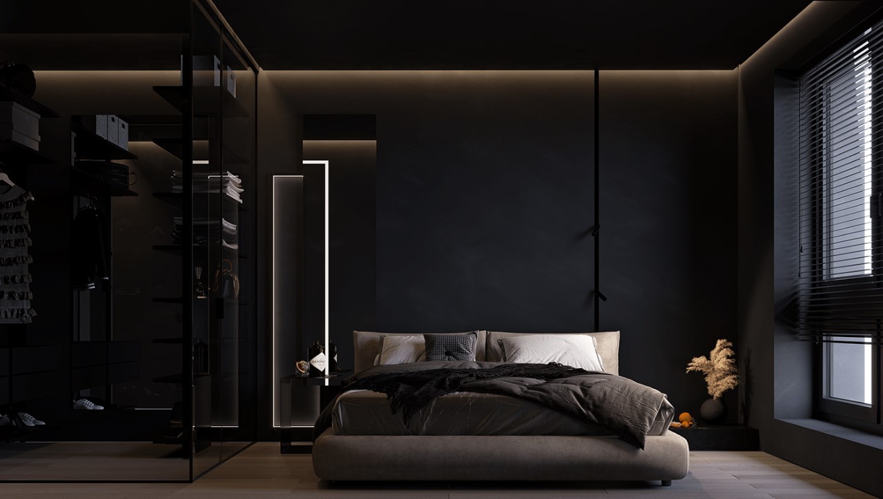 1 Phòng ngủ đẹp cho nam với nội thất tối giản